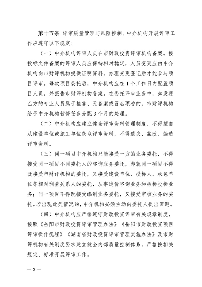 岳陽市財政局關于印發《財政投資評審項目委托中介機構評審管理辦法(試行)》的通知