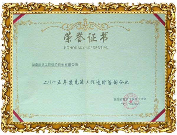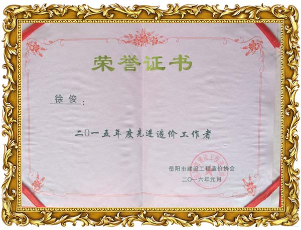 我公司榮獲2015年度岳陽市工程造價協(xié)會先進單位榮譽,同時徐俊,倪娟榮獲岳陽市造價協(xié)會2015年度優(yōu)秀個人榮譽。